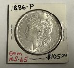 1886-P Morgan Silver Dollar, Fine, paper case. Location Back Tall Cases 1886-P Morgan Silver Dollar, Fine, paper case. Location Back Tall Cases