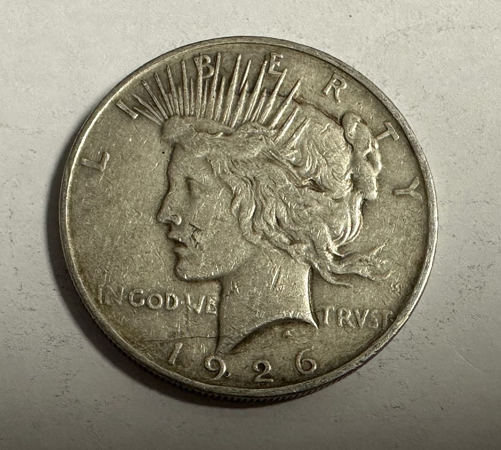 1926-D Peace Liberty Silver Dollar, good, Location Back Tall Cases 1926-D Peace Liberty Silver Dollar, good, Location Back Tall Cases