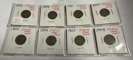 8 Indian Head Cents, 1891, 1898, 1901, 1907, 1890, 1898, 1907, 1908, Location Back Tall Case 8 Indian Head Cents, 1891, 1898, 1901, 1907, 1890, 1898, 1907, 1908, Location Back Tall Case