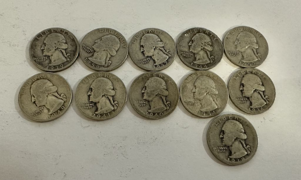 11 Washington Quarters, 1939, 1958, 1937, 1944, 1952, 1949, 1941, 1940, 1954, 1936, 1938, Location Back Tall Case 11 Washington Quarters, 1939, 1958, 1937, 1944, 1952, 1949, 1941, 1940, 1954, 1936, 1938, Location Back Tall Case
