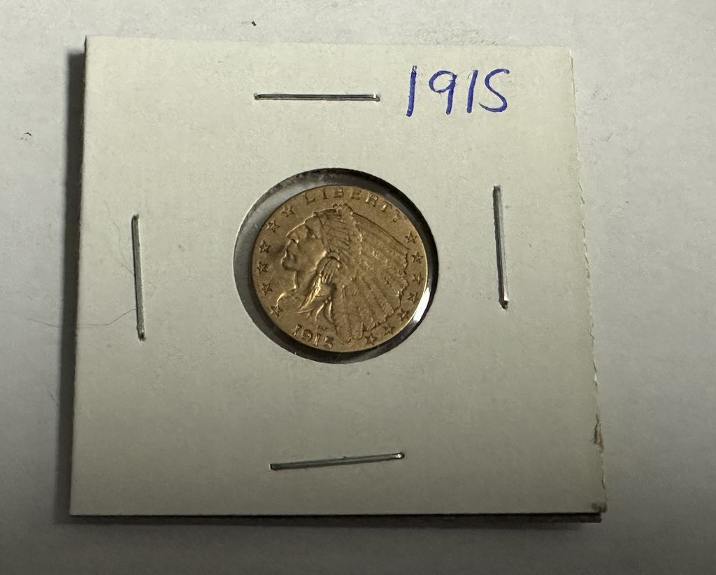 1915 $2.50 Indian Head Gold Quarter Eagle, fine, Location Back Tall Case 1915 $2.50 Indian Head Gold Quarter Eagle, fine, Location Back Tall Case