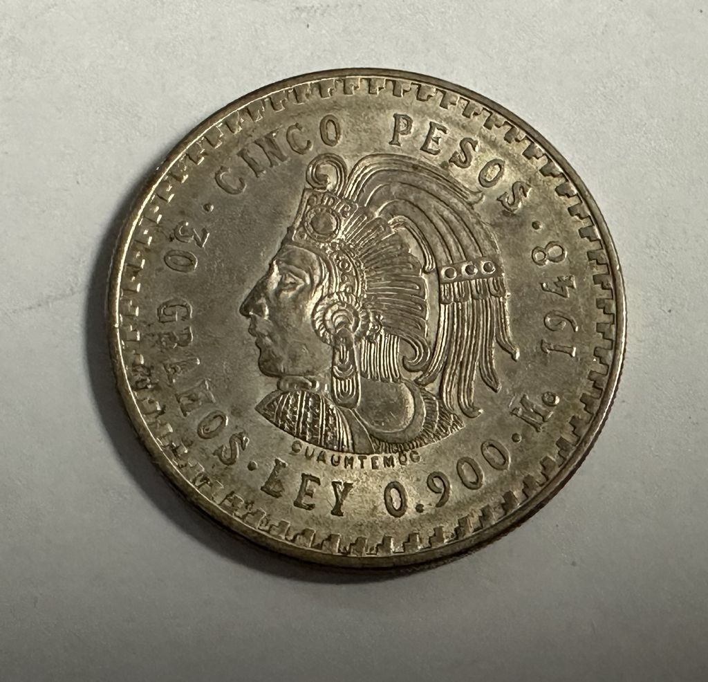 Mexico 1948 5 Peso UNC, Location Back Tall Case Mexico 1948 5 Peso UNC, Location Back Tall Case