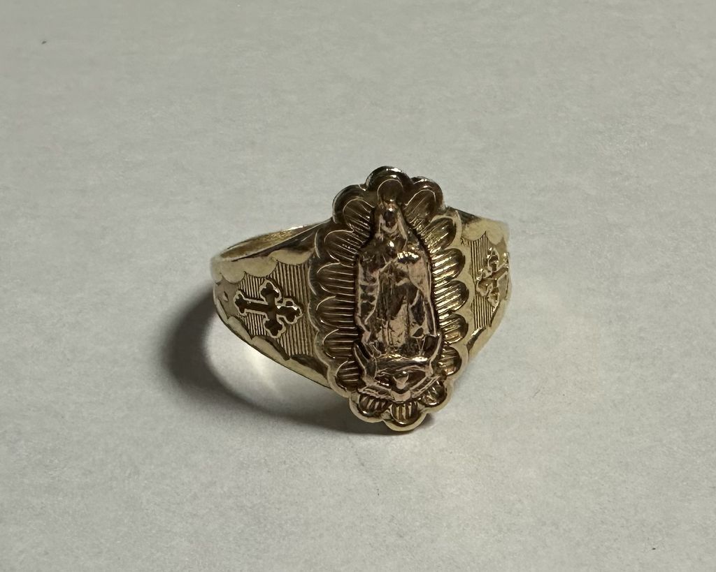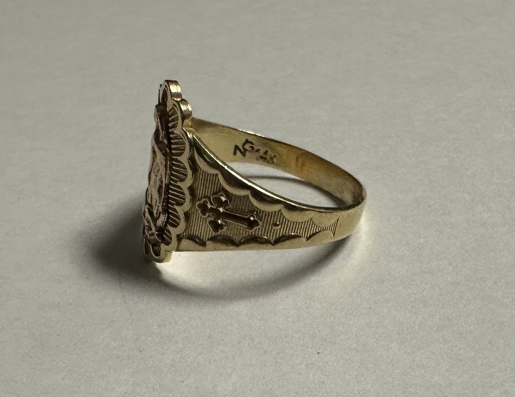 14K Religious Ring, size 8 1/2, 3.1 grams, Location Back Tall Case 14K Religious Ring, size 8 1/2, 3.1 grams, Location Back Tall Case