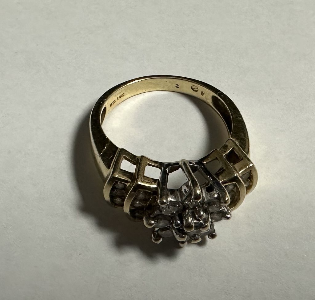WIC 14k Diamond Ladies Ring, size 9, 7.2 grams, Location Back Tall Case WIC 14k Diamond Ladies Ring, size 9, 7.2 grams, Location Back Tall Case