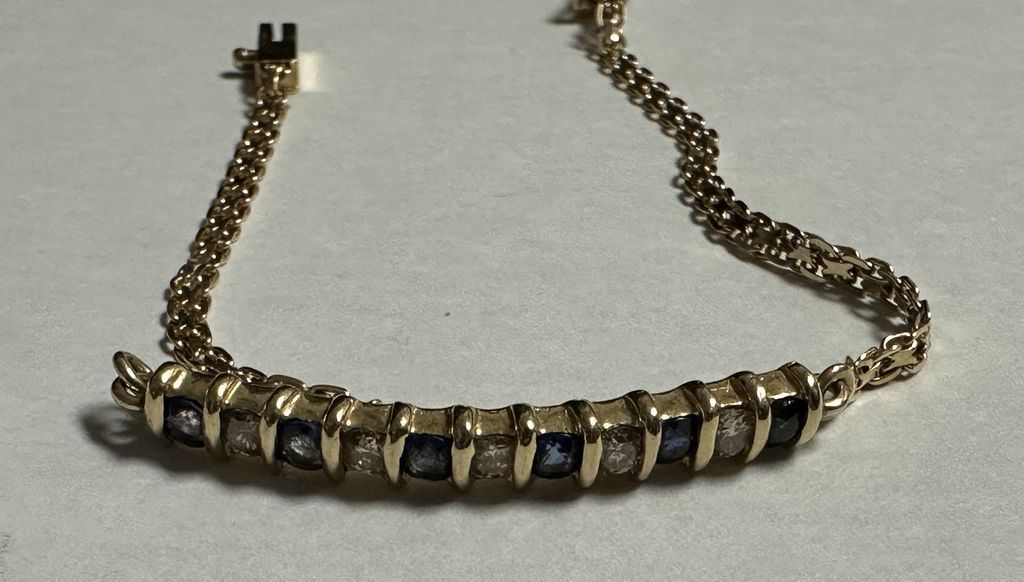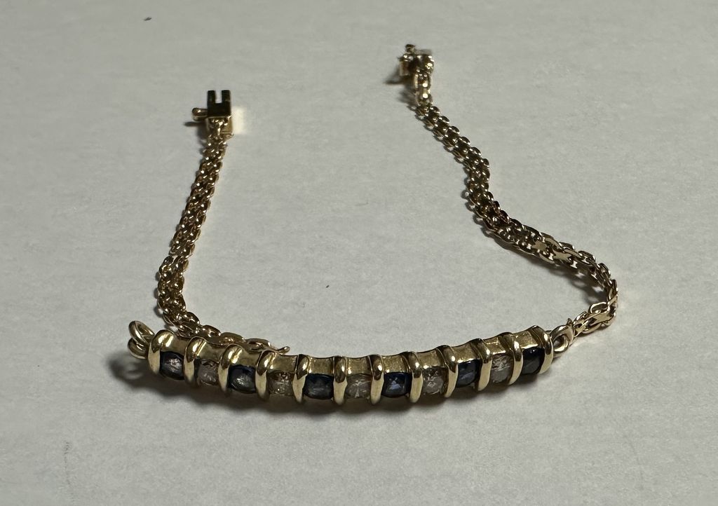 14K Ladies Bracelet, with small diamonds. 3.9 grams, Location Back Tall Case 14K Ladies Bracelet, with small diamonds. 3.9 grams, Location Back Tall Case