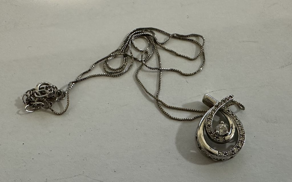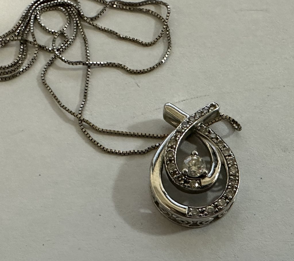 14K KS Necklace with clear stones, Location Back Tall Case 14K KS Necklace with clear stones, Location Back Tall Case