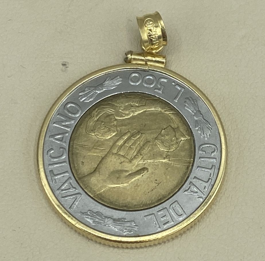 551 14k Bezel 500 Lire Pope John Paul Coin Pendant