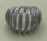 653 Ladies 14k White Gold Diamond Wave Detailed Bombe Ring SZ: 9