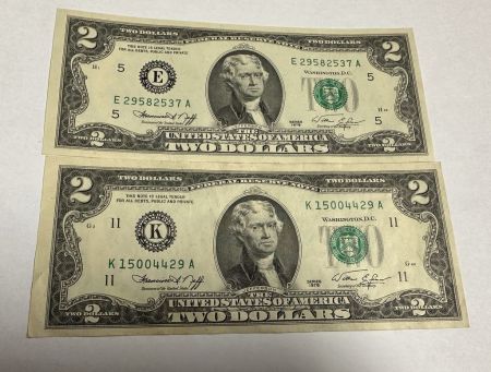 Two 1976 Two Dollar Notes, Location Back Tall Cases Two 1976 Two Dollar Notes, Location Back Tall Cases