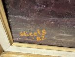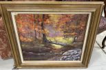 Alfred Nicols 1982 Landscape Painting, Brandon Mississippi Artist, signed lower left, 32"h., 28"w, Location Front Shelves Alfred Nicols 1982 Landscape Painting, Brandon Mississippi Artist, signed lower left, 32"h., 28"w, Location Front Shelves