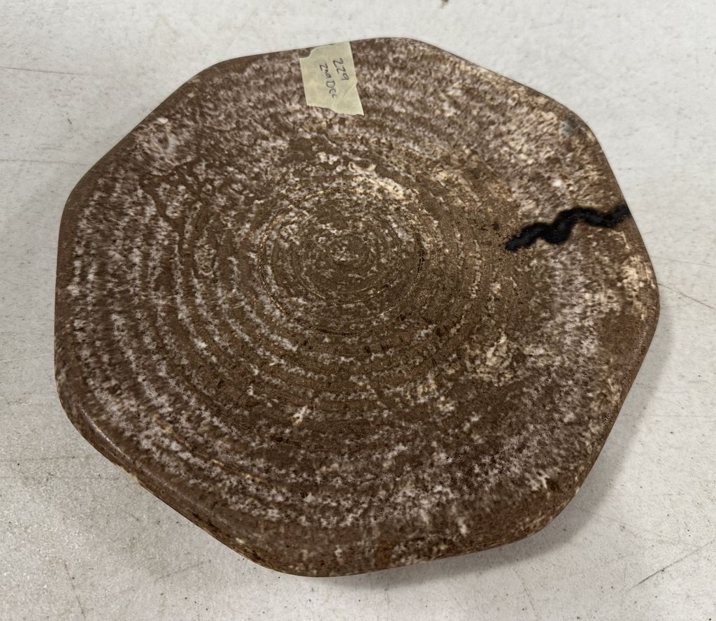 McCarty Pottery Nutmeg Octagon Plate, river mark, 9"w, Location Front Shelves McCarty Pottery Nutmeg Octagon Plate, river mark, 9"w, Location Front Shelves