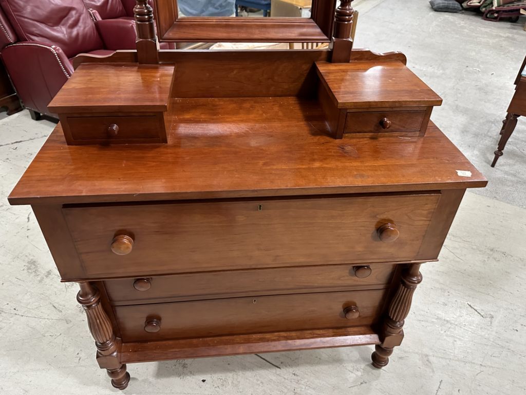 American Reproduction Mahogany Dresser, good condition, 68"h., 43"w. Location Row 16 American Reproduction Mahogany Dresser, good condition, 68"h., 43"w. Location Row 16