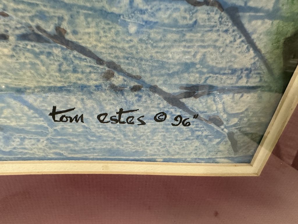 Tom Estes 2000 (1926-2016) Forest, Mississippi Artist, Watercolor of Lake, 1996, matted, framed, 20"h., 27"w, Location Right Wall Tom Estes 2000 (1926-2016) Forest, Mississippi Artist, Watercolor of Lake, 1996, matted, framed, 20"h., 27"w, Location Right Wall