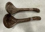 Pair of Peters Pottery Ladles, nutmeg, signed, 9", Location Front Shelves Pair of Peters Pottery Ladles, nutmeg, signed, 9", Location Front Shelves