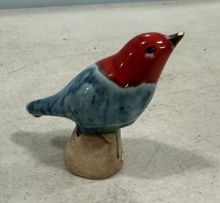 Wolfe Pottery Ceramic Wren Bird, head up, 4"h, chip on beak, Location Front Shelves Wolfe Pottery Ceramic Wren Bird, head up, 4"h, chip on beak, Location Front Shelves