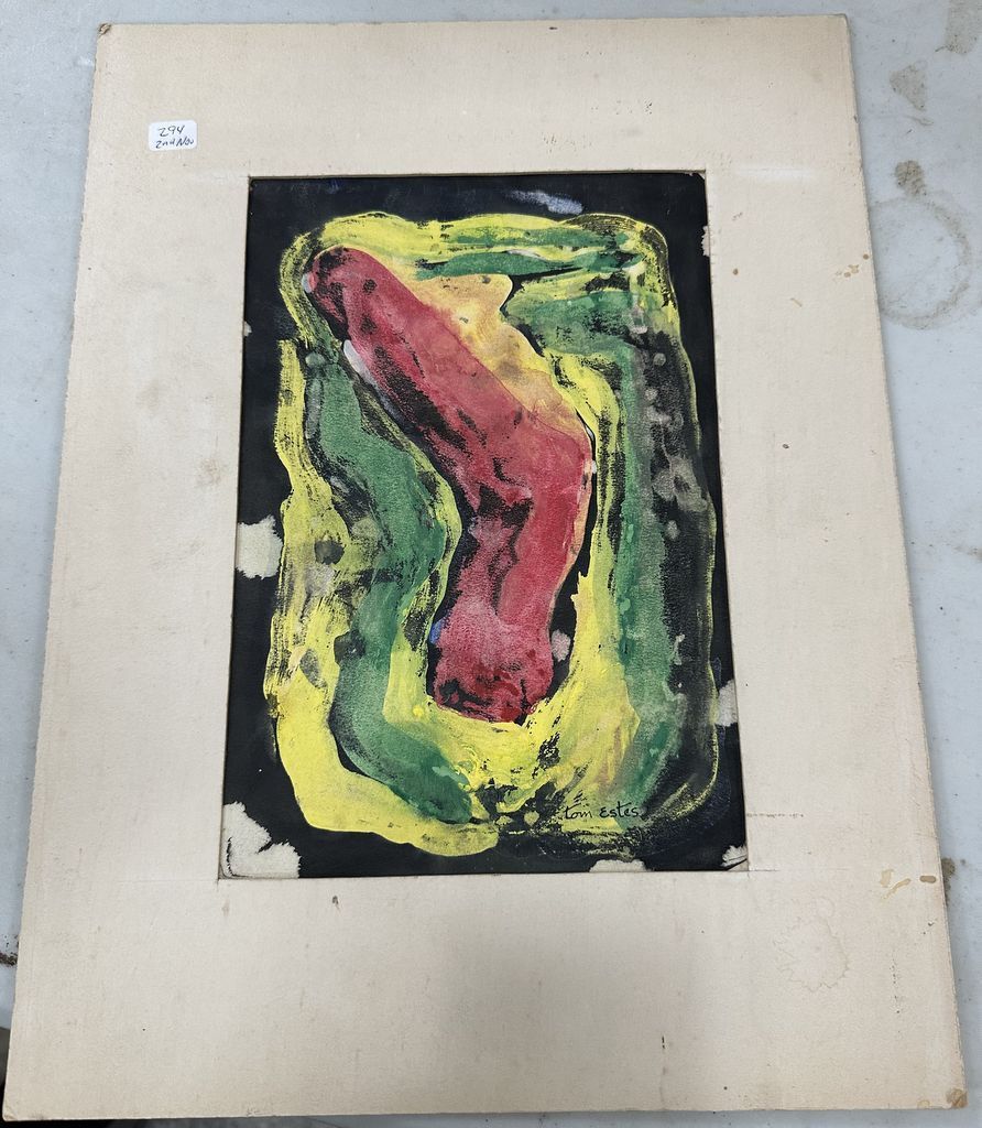 Tom Estes 2000 (1926-2016) Forest, Mississippi Artist, Abstract Watercolor, matted, unframed, 16"h., 12"w, Location Front Shelves Tom Estes 2000 (1926-2016) Forest, Mississippi Artist, Abstract Watercolor, matted, unframed, 16"h., 12"w, Location Front Shelves