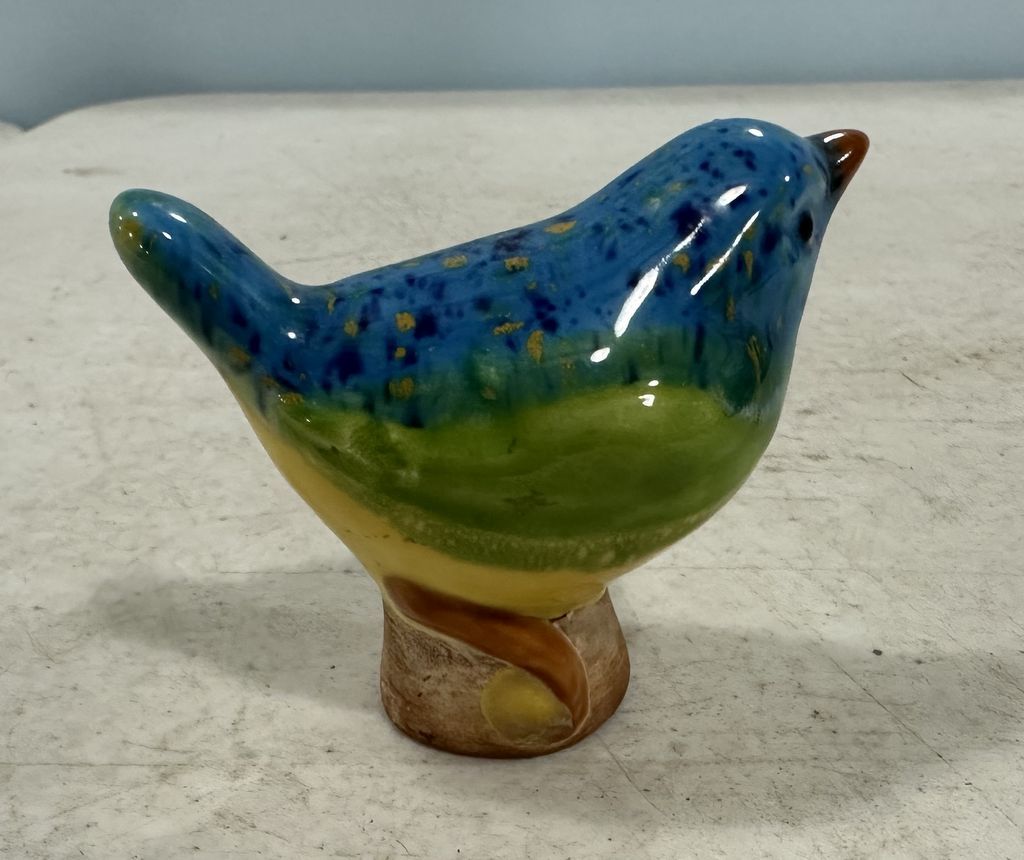 Wolfe Studio Pottery Wren Bird, colorful, glazed, 2 1/2", Location Front Shelves Wolfe Studio Pottery Wren Bird, colorful, glazed, 2 1/2", Location Front Shelves