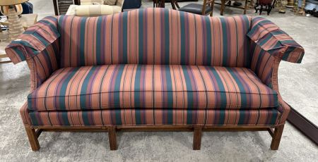 Fairfield Upholstered Camel Back Sofa, striped, 84"w. Location Row 9 Fairfield Upholstered Camel Back Sofa, striped, 84"w. Location Row 9