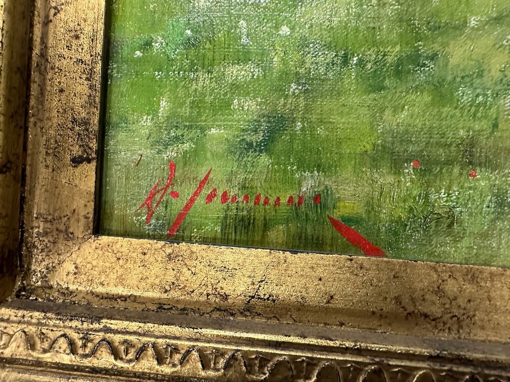 Antonio Sannino Landscape Painting, Naples Artist, Batte Furniture Piece, on canvas, framed, 23"h., 33"w, Location Front Shelves Antonio Sannino Landscape Painting, Naples Artist, Batte Furniture Piece, on canvas, framed, 23"h., 33"w, Location Front Shelves