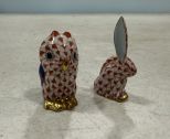 Herend Hand Painted Owl and Rabbit, 2"h, Location Front Shelves Herend Hand Painted Owl and Rabbit, 2"h, Location Front Shelves