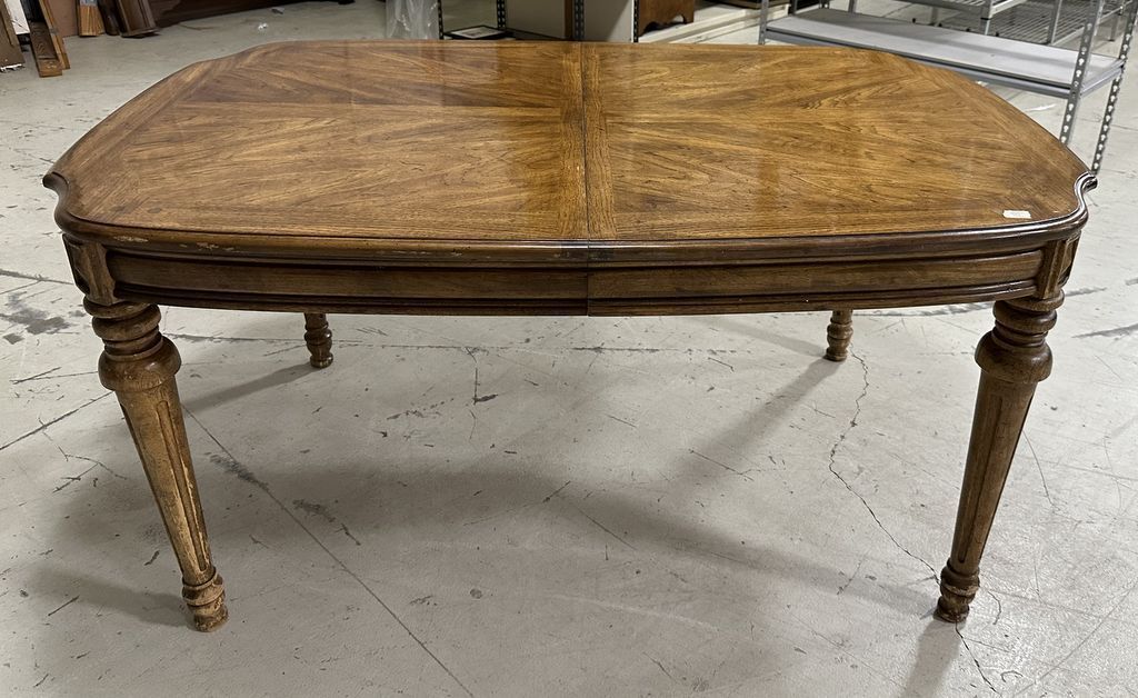 Late 20th Century Italian Renaissance Dining Table, two leaves, has finish worn areas on feet, 29"h., 61"long, 42"w. Location Row 17 Late 20th Century Italian Renaissance Dining Table, two leaves, has finish worn areas on feet, 29"h., 61"long, 42"w. Location Row 17
