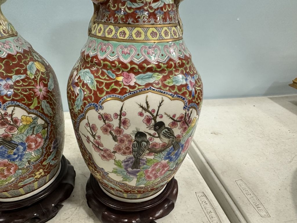 Pair of Modern Chinese Porcelain Vases, hand painted, 12"h, Location Front Shelves Pair of Modern Chinese Porcelain Vases, hand painted, 12"h, Location Front Shelves