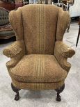 Thomasville Ball-n-Claw Wing Back Arm Chair, upholstered, good condition. Location Row 15 Thomasville Ball-n-Claw Wing Back Arm Chair, upholstered, good condition. Location Row 15