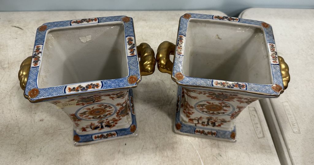 Pair of Chinese Modern Porcelain Urns, 8"h, Location Front Shelves Pair of Chinese Modern Porcelain Urns, 8"h, Location Front Shelves