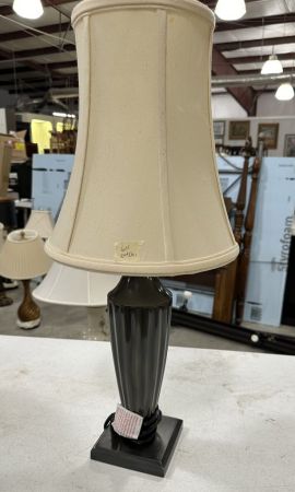 Contemporary Metal Vase Lamp, Stiffel shade, 28"h, Location Front Shelves Contemporary Metal Vase Lamp, Stiffel shade, 28"h, Location Front Shelves