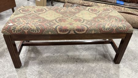 Late 20th Century Cherry Bench, 42", upholstered top cushion. Location Back Center Late 20th Century Cherry Bench, 42", upholstered top cushion. Location Back Center