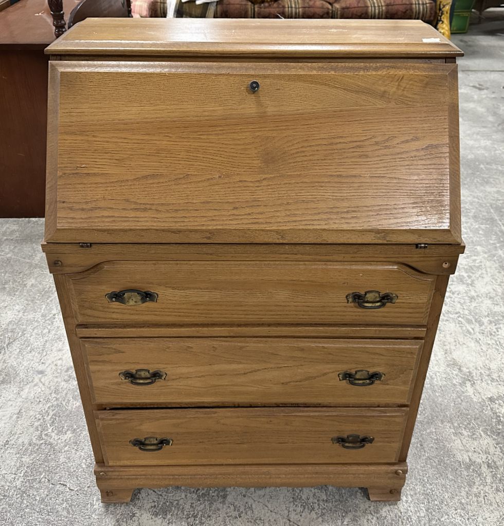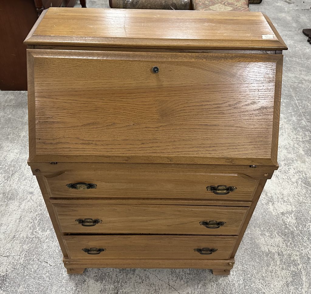 Late 20th Century Oak Secretary Bureau, drop front desk, Traditional style, 42"h., 30"w. Location Row 13 Late 20th Century Oak Secretary Bureau, drop front desk, Traditional style, 42"h., 30"w. Location Row 13