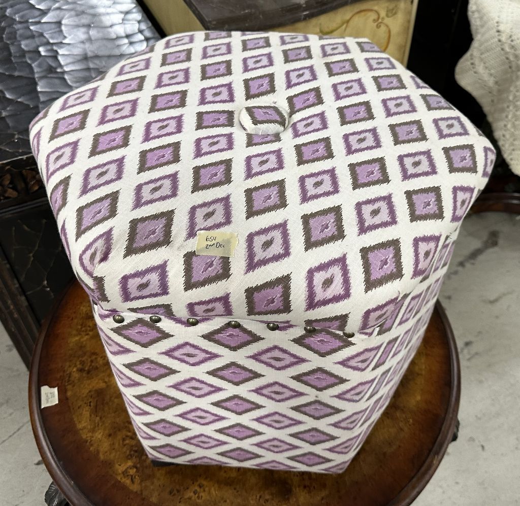 Modern Upholstered Designer Ottoman, 17"h., 21"w. Location Row 3 Modern Upholstered Designer Ottoman, 17"h., 21"w. Location Row 3