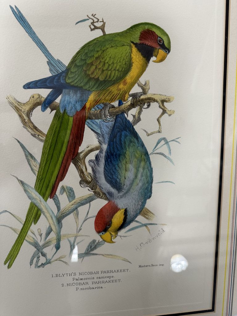 H. Gronvold Nicobar Parrakeet Hand Colored Print, 27"h., 23"w, Location Right Wall H. Gronvold Nicobar Parrakeet Hand Colored Print, 27"h., 23"w, Location Right Wall