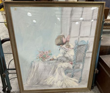 Large Framed Print of Lady, frame is 52"h., 43"w. Large Framed Print of Lady, frame is 52"h., 43"w.
