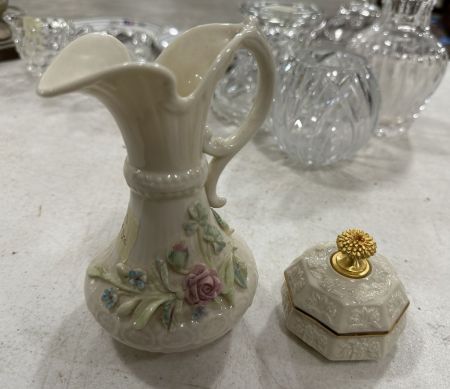 723 Belleek Porcelain Pitcher and Lenox Trinket Box