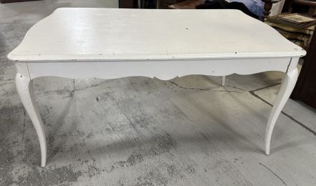 French Style White Painted Dining Table, 29"h., 64"long, 39"w. Location Row 4 French Style White Painted Dining Table, 29"h., 64"long, 39"w. Location Row 4