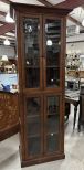 Tall Modern Cherry Bookcase, two piece, inner shelves, beveled glass, 93"h., 28"w. Location Right Center Tall Modern Cherry Bookcase, two piece, inner shelves, beveled glass, 93"h., 28"w. Location Right Center