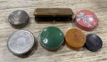 7 Vintage Collectible Powder Boxes, Location Back Metal Shelves 7 Vintage Collectible Powder Boxes, Location Back Metal Shelves