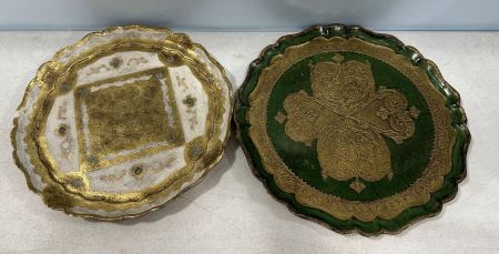 Two Italian Florentine Trays, 14"dia, Location Back Metal Shelves Two Italian Florentine Trays, 14"dia, Location Back Metal Shelves