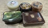 5 Decorative Powder and Trinket Boxes, Location Back Metal Shelves 5 Decorative Powder and Trinket Boxes, Location Back Metal Shelves