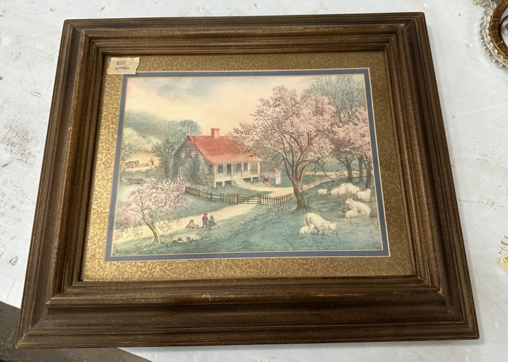 Framed Print of Plantation Home, framed, 16"h., 20"w. Location Back Metal Shelves Framed Print of Plantation Home, framed, 16"h., 20"w. Location Back Metal Shelves