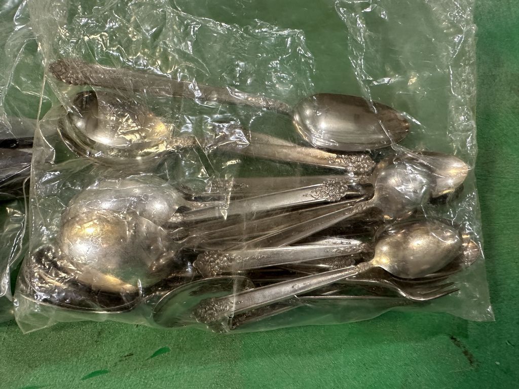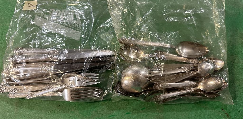King Edward Silver Plate Flatware, spoons, forks, knives, set, Location Front Shelves King Edward Silver Plate Flatware, spoons, forks, knives, set, Location Front Shelves