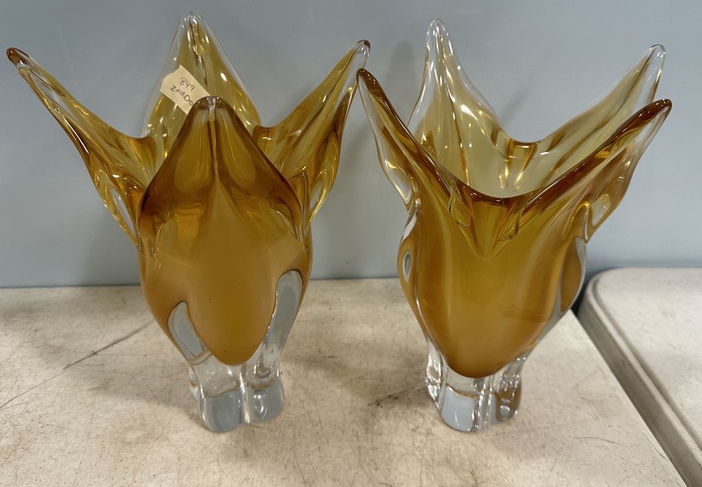 Pair of Art Glass Vases, Location Front Shelves Pair of Art Glass Vases, Location Front Shelves