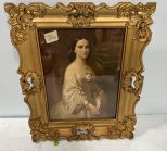 Gold Framed Portrait of Lady, 16"h., 12"w, Location Back Metal Shelves Gold Framed Portrait of Lady, 16"h., 12"w, Location Back Metal Shelves