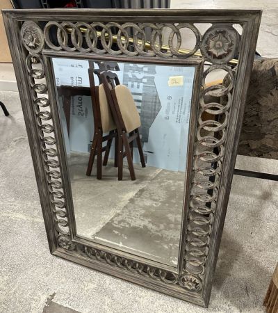 Modern Rustic Beveled Wall Mirror, 40"h., 28"w. Location Right Wall Modern Rustic Beveled Wall Mirror, 40"h., 28"w. Location Right Wall