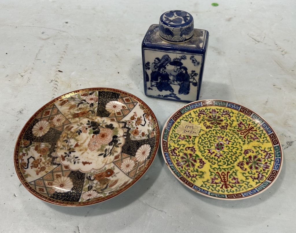 Group of Asian Porcelain, jar has crack, Location Back Metal Shelves Group of Asian Porcelain, jar has crack, Location Back Metal Shelves