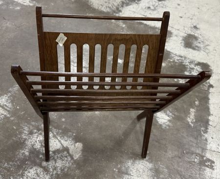 Mid Century Oak Magazine Holder, Location Back Center Mid Century Oak Magazine Holder, Location Back Center