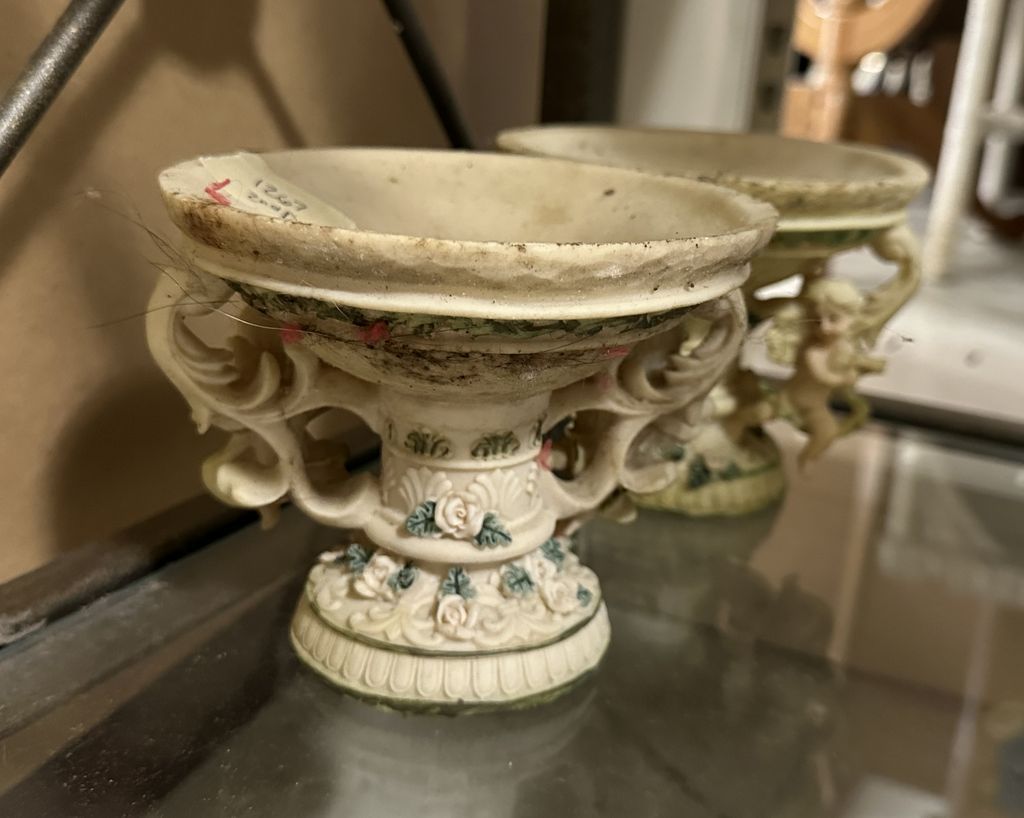 Pair of Ceramic Urns, Location Right Metal Shelves Pair of Ceramic Urns, Location Right Metal Shelves