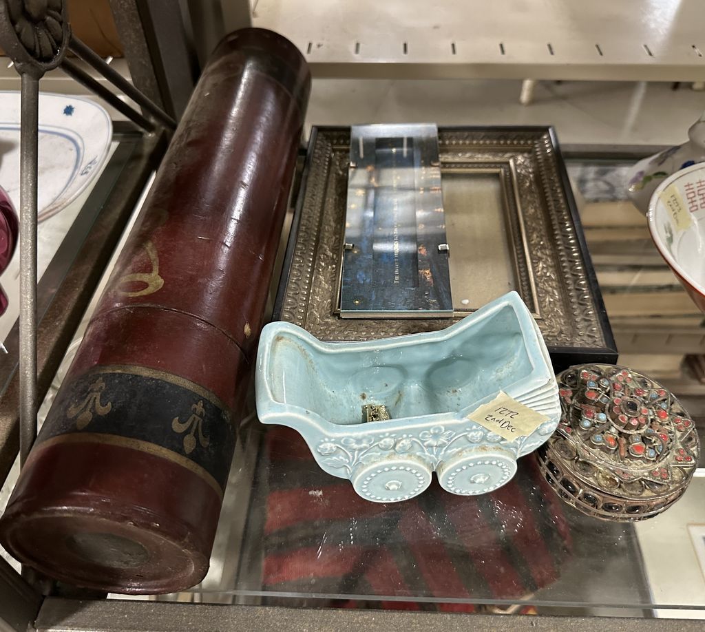 Trinket Box, Storage Box, Ceramic Stroller and Picture, Location Right Metal Shelves Trinket Box, Storage Box, Ceramic Stroller and Picture, Location Right Metal Shelves