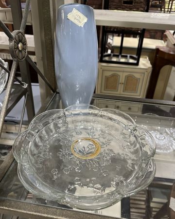 1276 Ceramic Blue Vase and Glass Torte Plates